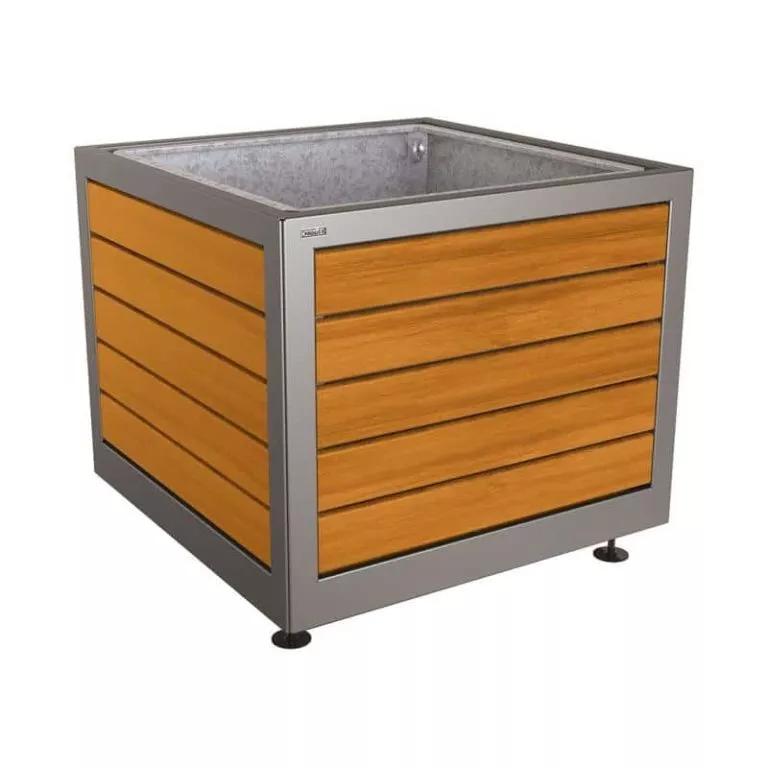 L’esprit du design Silaos® dans un bac acier et bois pour harmoniser l’aménagement de vos espaces verts.