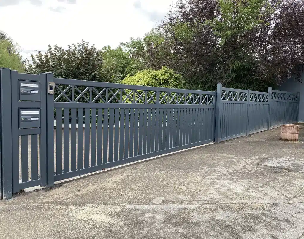 L’élégance de la clôture Alwena est notable, composé de lames pleines (150mm) et accompagné de ses décor en tôle découpé au laser, cette clôture saura vous séduire. Son design unique, tout en finesse, pourra parfaitement délimiter votre terrain avec grâce, tout en respectant votre intimité. Inspiré du style des clôtures des prés, ce portillon fera souffler un air de campagne et de fraîcheur à votre propriété.