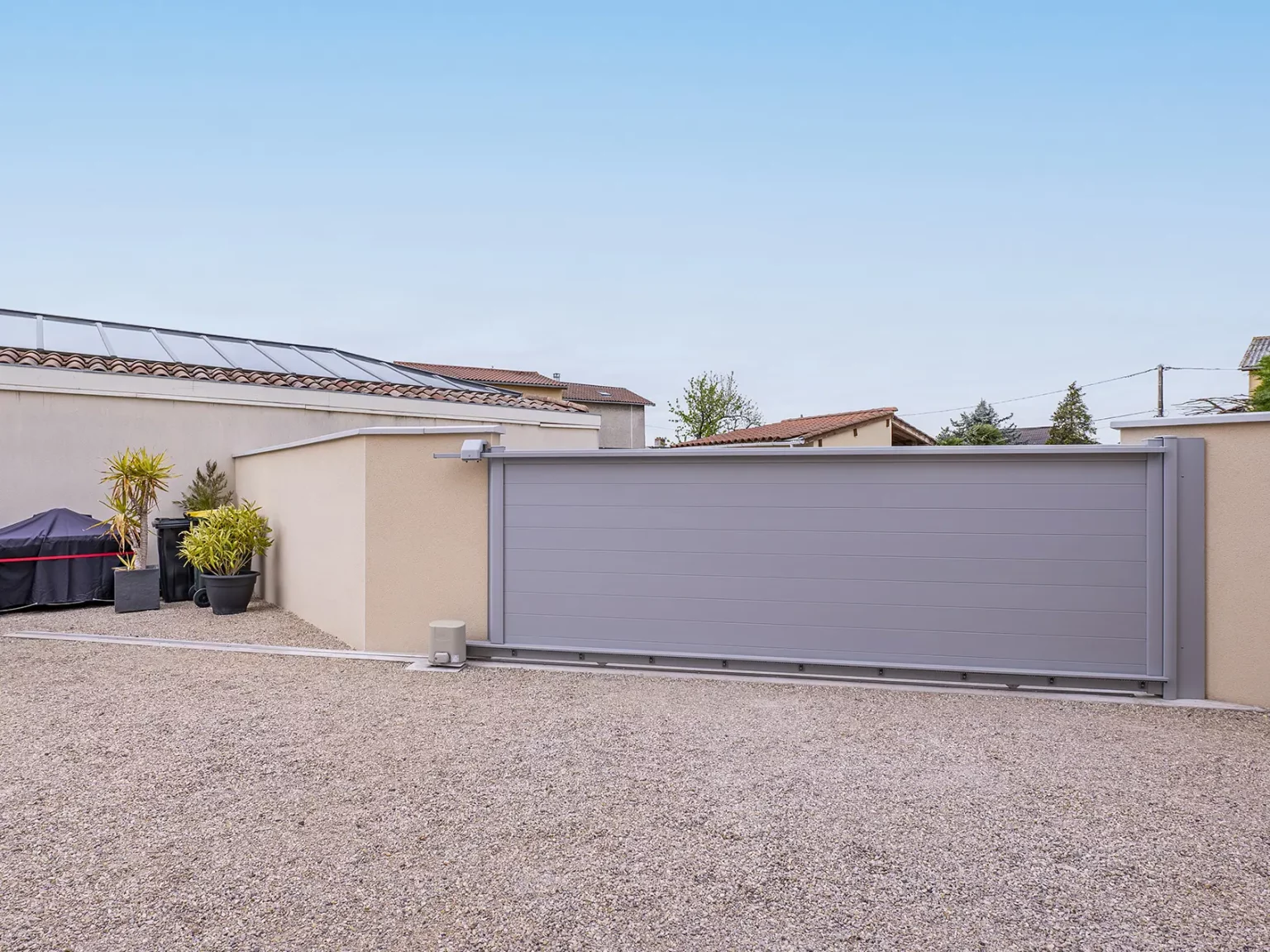 L’immanquable des portails aluminium plein droit. A la fois contemporain et tout terrain, il s’adapte parfaitement à tout type d’environnement. Idéal pour valoriser votre propriété, sécuriser vos accès et profiter pleinement de vos extérieurs. Anaé, c’est investir sans se tromper.
