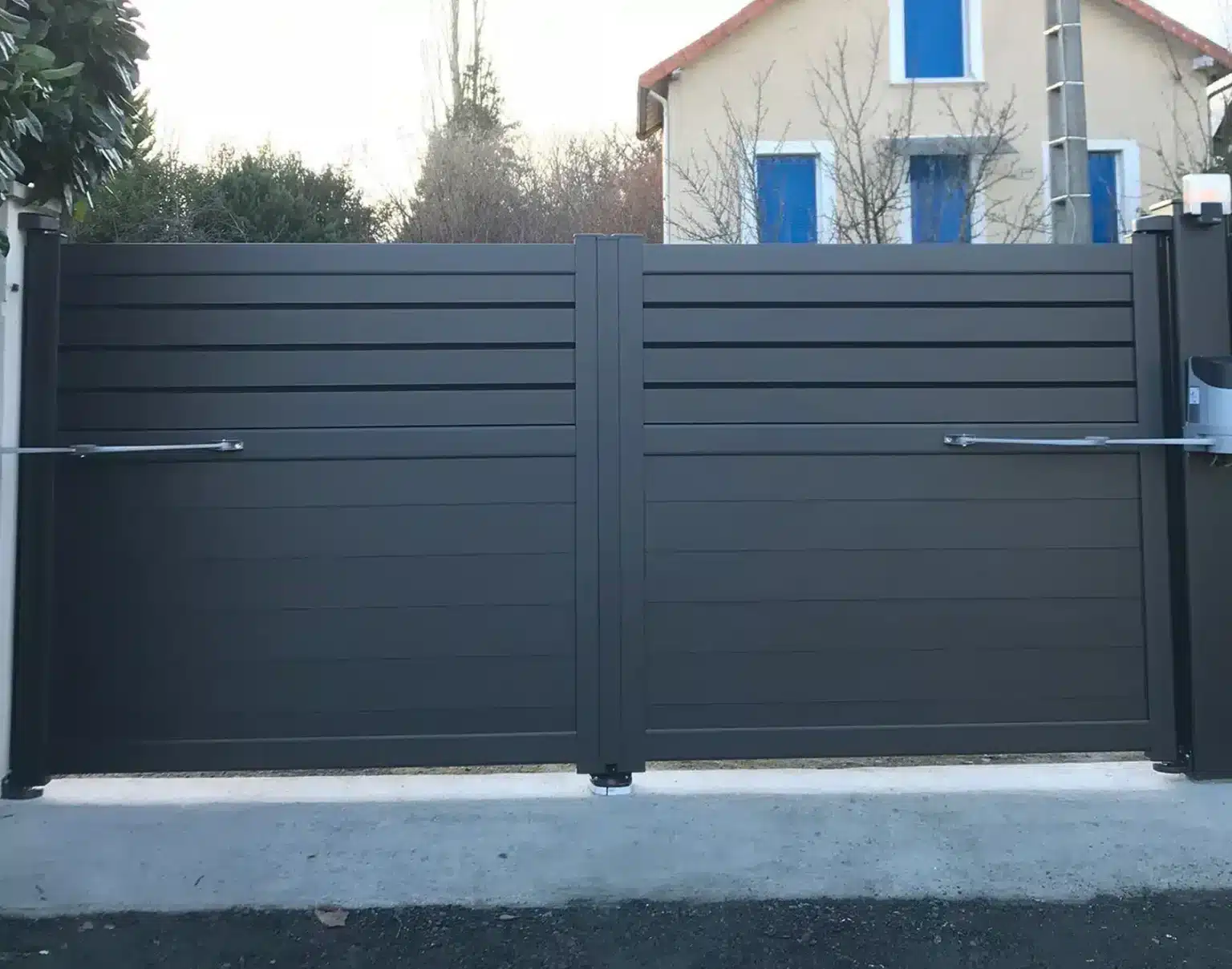 Le portail Caban est un joli compromis entre lumière et intimité ! En effet, il possède beaucoup d’atouts : idéal pour des régions venteuses, car ses lames ajourées laissent passer le vent. De plus, ce portail en aluminium semi-plein avec ses lames horizontales, vous assure également intimité et protection tout en vous proposant des lignes modernes et délicates.